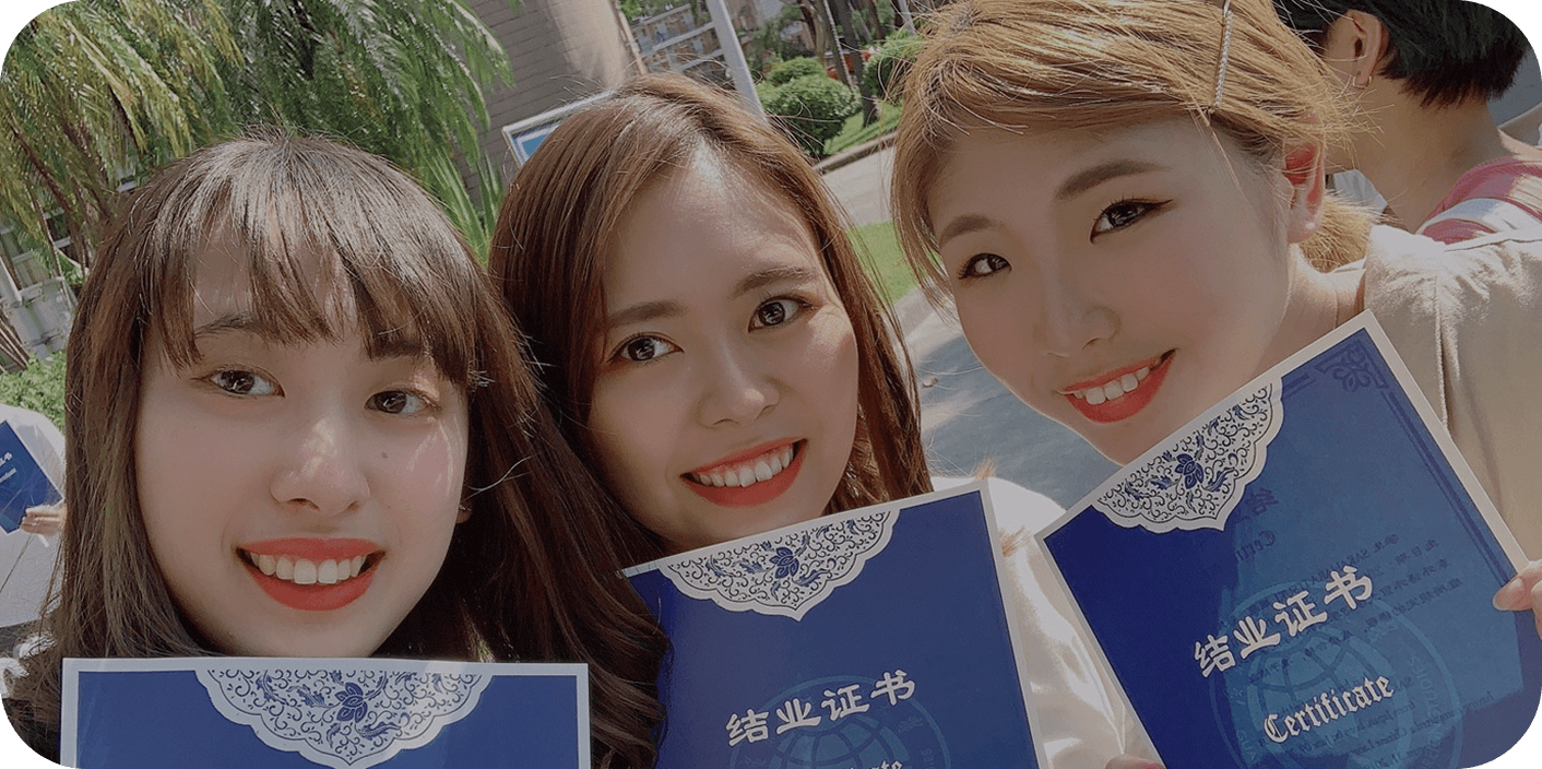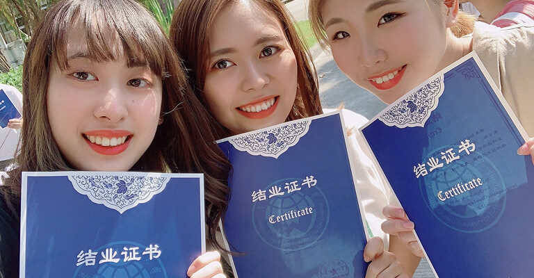 2年の4か月間、語学力の向上と異文化交流を目的に派遣留学生として中国山東省の青島濱海学院に留学。留学終盤には先生と談笑するレベルまで会話力がアップ。