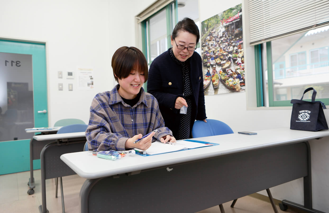 進路に応じて、編入希望者には過去問演習などの編入対策、就職希望者にはタイ語検定などの資格取得対策の授業を行います。