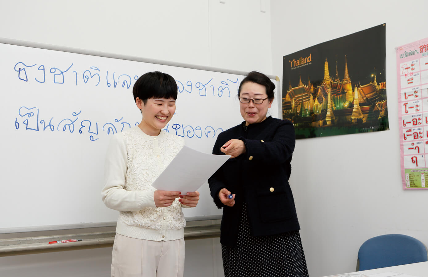 先生の教え方が丁寧で分かりやすく、タイ語が上達しやすいです。他学科の学生もフレンドリーで、外国人学生とも交流できるので、多言語を学びたい人に最高の環境です!