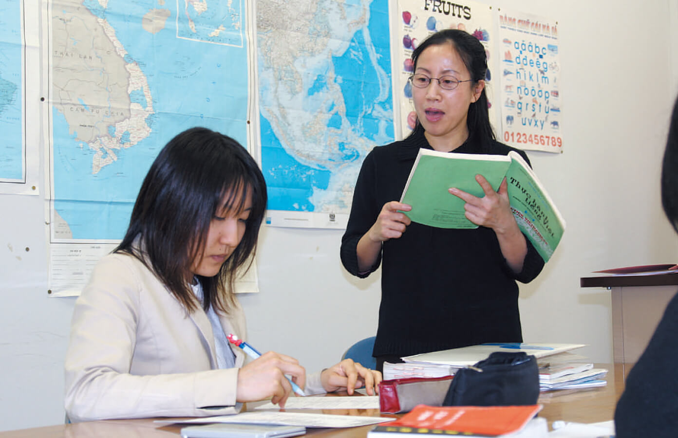 ベトナム語は美しい響きを持ち、文字はローマ字ベースにしたもので、文法もシンプルで覚えやすい言語です。本専攻ではまず発音をしっかり練習し、会話や作文はネイティブ講師、文法や講読は日本人講師が担当。4技能をバランスよく学べます。